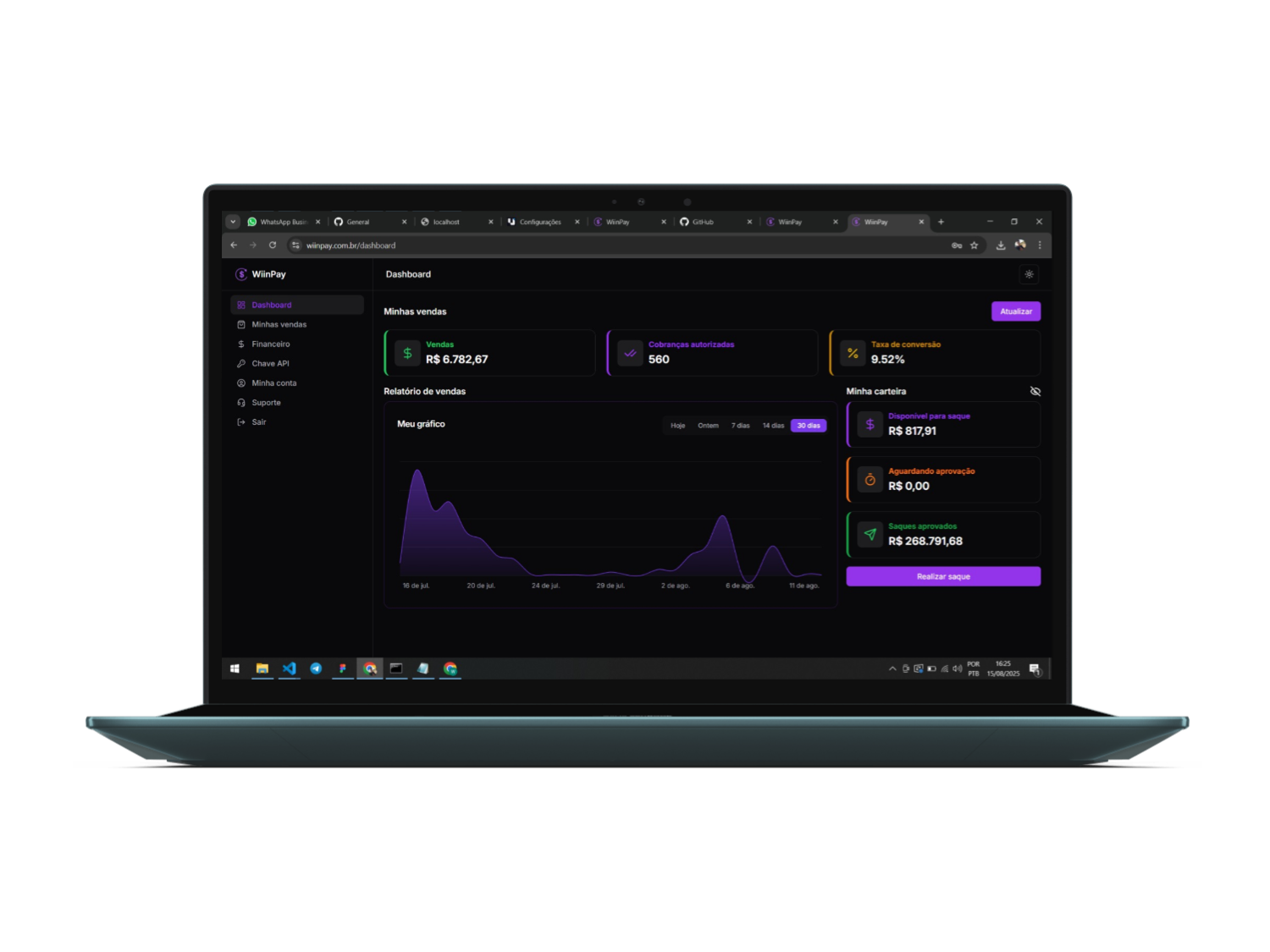 Na Wiinpay, seu dinheiro está disponível imediatamente após solicitar um saque.